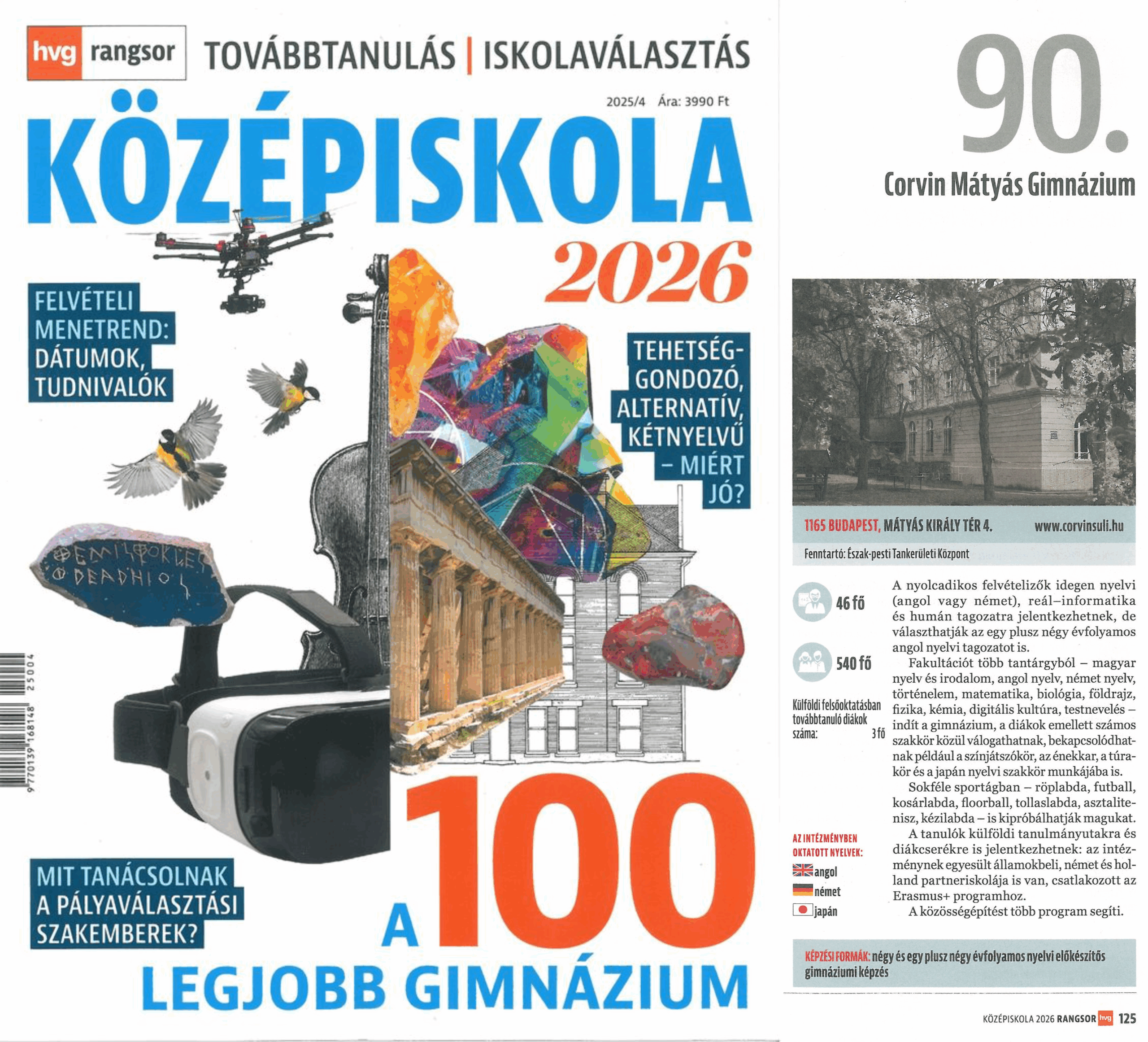 A 100 legjobb gimnáziumot bemutató HVG kiadványba idén újra bekerült iskolánk!